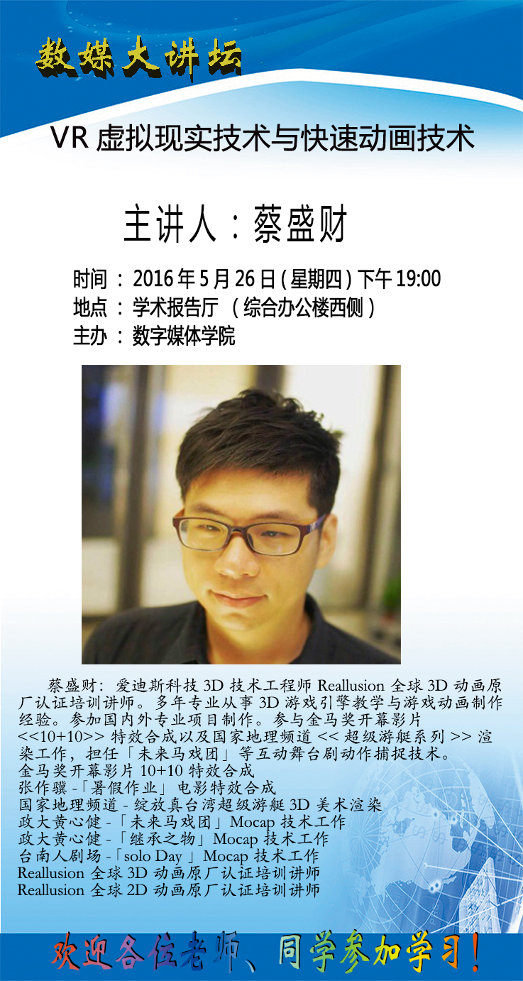 数媒大讲坛:VR虚拟现实技术与快速动画技术