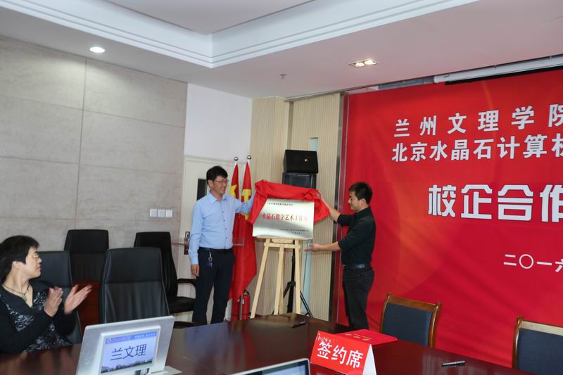 签约仪式后,双方共同为北京水晶石计算机技术培训有限公司在我校yl7703永利设立的“水晶石数字艺术工作室”揭牌。