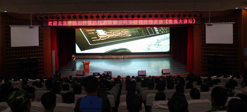 首先,讲座在院长李恒杰教授的致辞中拉开序幕,对张建铖总经理的到来表示欢迎。接着,由张建铖总经理向大家介绍了水晶石公司承接的国内外重大项目有2008年北京奥运会、2010上海世博会、2012伦敦奥运会、以及2020的北京冬奥会等。而且从企业、地产、影视三个方面详细的给大家介绍了各岗位需要什么样的人才。在此期间,讲座气氛活跃。最后,张建铖总经理希望在座的每一位都能再计算机行业领域打造出属于自己的天空。
