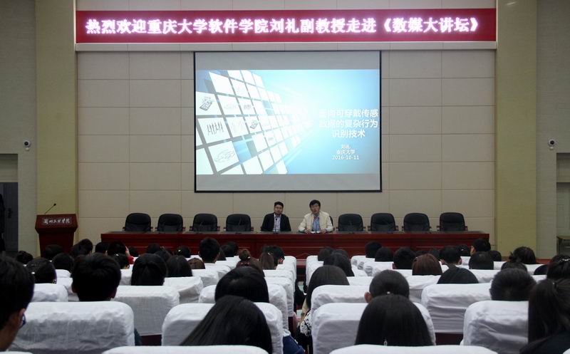 1011日,yl7703永利特邀重庆大学软件学院刘礼副教授走进《数媒大讲坛》,为我院全体师生带来一场《面向可穿戴传感数据的复杂行为识别技术》的讲座,讲座由院长李恒杰教授主持。
