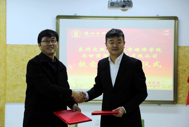甘肃雨石文化科技发展有限责任公司总经理张玉亮、运营总监刘慧明与我校招生就业处李红梅处长、数媒学院班子成员和相关人员出席签约及揭牌仪式。