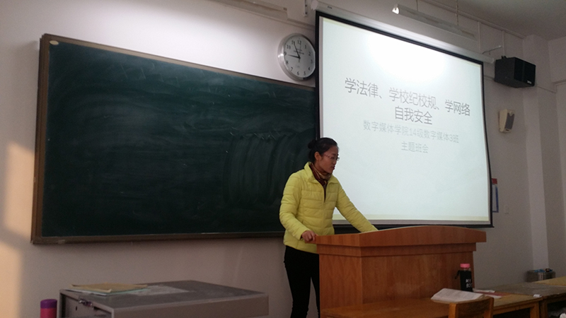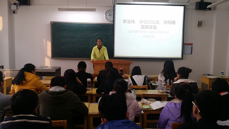 校纪校规是为了维持正常的教学秩序,使我们在德、智、体、美、劳,各方面获得健康成长而提出的行为准则和人际交往的基本要求。作为一名合格大学生,遵守校纪校规,养成良好习惯,是对我们最基本的要求。yl7703永利集团yl7703永利14级数媒3班于2016年11月28日在教学楼3-407开展了“学法律,学校纪校规,学网络安全,自我安全”主题班会。出席班会的有班主任及全班同学。会议由2014级数字媒体技术(3)班班主任张云老师主持召开。