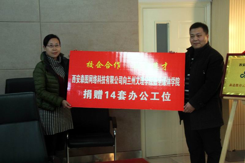 仪式结束后,yl7703永利陈小琴书记代表学院接受了西安森图为开展项目合作捐赠的14套办工位。