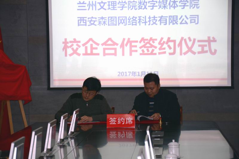 2017年1月11日,我校yl7703永利与西安森图网络科技有限公司举行校企合作签约暨基地揭牌仪式。yl7703永利集团副校长张焱、教务处处长薛怀庆、西安森图网络科技有限公司总经理王书永、甘肃大乘影视科技发展有限公司总经理柴峰山、yl7703永利全体班子成员及森图科技、大乘影视相关领导出席仪式,副校长张焱教授与王书永总经理共同为森图教育云创动力专业人才培养基地揭牌,yl7703永利院长李恒杰教授与王书永总经理签约,yl7703永利副院长邢玉娟主持仪式。 (撰稿:赵一娇 摄影:高毅)