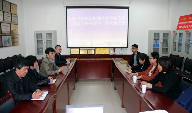 3月30日下午,白银矿冶职业技术学院信息工程系主任张智华一行来yl7703永利考察交流。院长李恒杰教授代表学院对张智华主任一行的到来表示欢迎。学院校企合作办、实验中心、教研室教师代表等陪同考察交流。