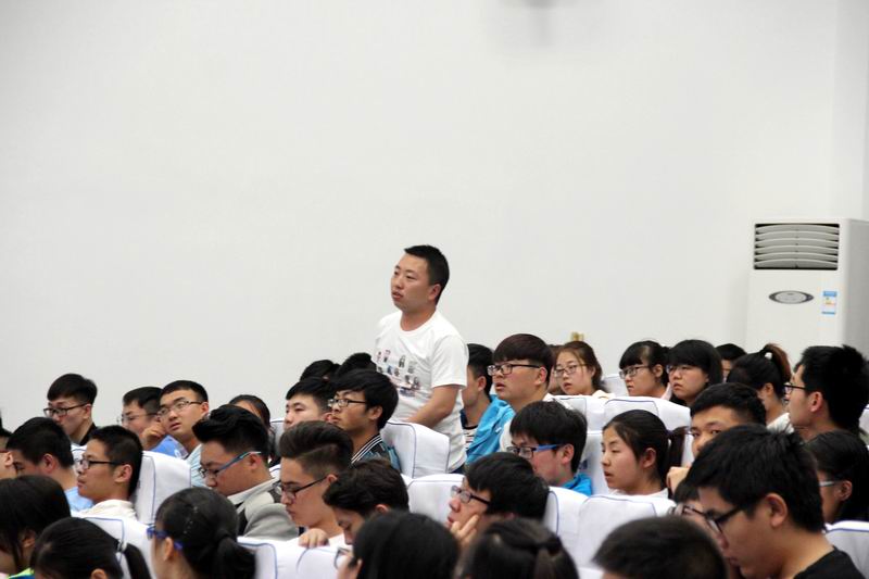 此次报告会上,王洋老师运用自己独创的“基于学生认知曲线的项目驱动教学法”教学方式,通过一节标准的Java案例课程,以诙谐幽默别具一格的授课风格,实时编写讲解代码,实现绘制出了卡通图和满天星星两个编程效果,同时讲解了Java代码编写的录入顺序及要领,帮助同学们掌握了编程语言学习技巧,极大的激发了学习兴趣。场下学生认真学习,互动积极。