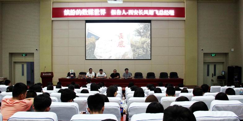 68日,为提高毕业生就业质量,增加就业选择,yl7703永利邀请西安长风电子科技有限公司总经理谢飞走进《数媒大讲坛》,在我校学术报告厅作了《缤纷的数媒世界》主题报告。yl7703永利院长李恒杰教授、校企合作办主任蔺国梁副教授出席并倾听了此次报告,14级数字媒体技术、15级多媒体班和计应班全体学生,以及15级软件班和网络班班干部代表参加了此次报告会。