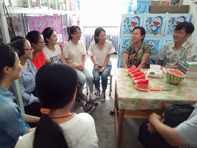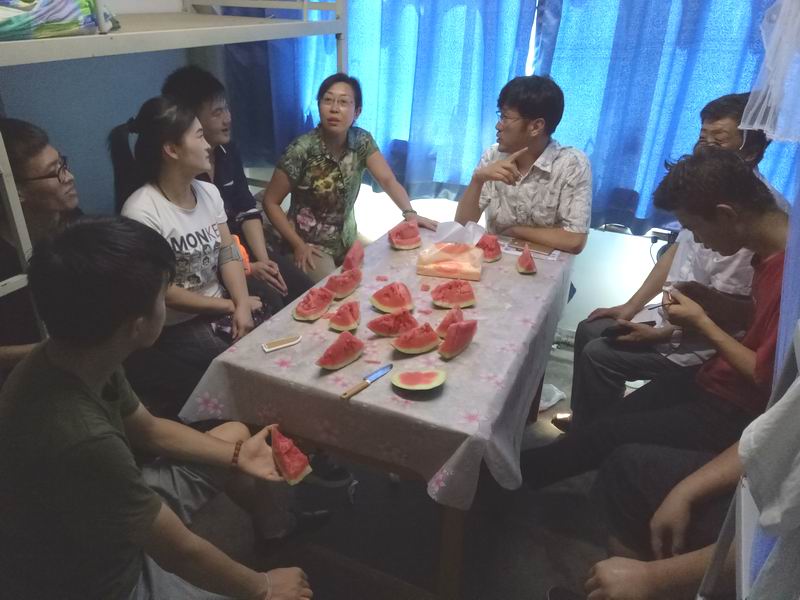 8月5日下午,为了进一步了解暑期留校考研学生的学习生活状况、鼓励同学们在假期中认真备考,数媒学院党总支书记陈小琴,院长李恒杰,副院长张毅,副院长邢玉娟,学院办公室主任高毅以及姚林老师前往学生宿舍慰问正在备战的考研学子并为每位同学发放西瓜。领导们与同学们进行了亲切的交谈,深入了解同学们的复习进度和复习中遇到的问题。陈小琴书记结合自身经历,对学子的考研状况予以悉心指导,鼓励学子天道酬勤,一份努力必将会有一份收获。李恒杰院长鼓励考研学子坚持不懈,劳逸结合,调整好心态,勇往直前,并预祝考研学生都能取得好成绩,早日实现自己的考研梦想。