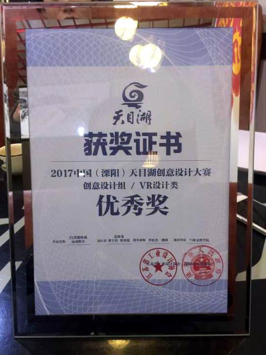 近日,在江苏省经济和信息化委员会的指导下,由江苏省工业设计协会、溧阳市人民政府共同主办的2017中国(溧阳)天目湖创意设计大赛颁奖典礼在江苏省溧阳市召开,我校yl7703永利学生设计作品在本次大赛中取得了创意设计类/VR设计组优秀奖的优异成绩。