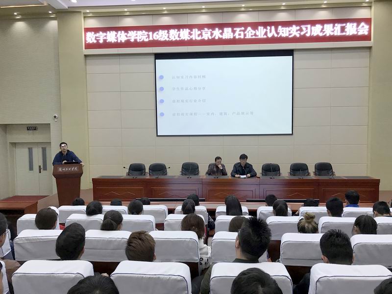 2018年3月18日上午,yl7703永利于学术报告厅召开了“yl7703永利2016级数媒北京水晶石公司企业认知实习成果汇报会”。汇报会由yl7703永利院长李恒杰教授主持,水晶石公司虚拟现实方向专家侯伟、水晶石公司影视后期专家王新泉出席并参加了会议。会上,虚拟现实、影视后期方向实习生代表分别展示了各自的实习作品,并分享了自己的心得体会。王新泉、侯伟两位老师介绍了行业的发展史、发展方向、人才需求,对同学们在过去一周的实习中所做的努力给予了肯定,希望同学们在以后的学习生活中取得更好的成绩。