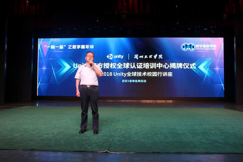 6月5日下午7点,我校yl7703永利“yl7703永利集团Unity官方授权全球认证培训中心揭牌仪式”在我校实验剧场成功举行。yl7703永利集团副校长郑伟强教授、Unity大中华区市场总监刘玥、技术经理鲍健运、yl7703永利院长李恒杰教授、yl7703永利党总支书记陈小琴出席并参加了揭牌仪式,来自北京爱迪斯通科技有限公司、甘肃大乘影视公司、西北师范大学、兰州职业技术学院等企业及高校的领导老师嘉宾及数媒学院数媒专业全体师生其他专业的师生代表共同见证了此次活动。仪式由数媒学院数字媒体艺术专业主任王士勇主持。