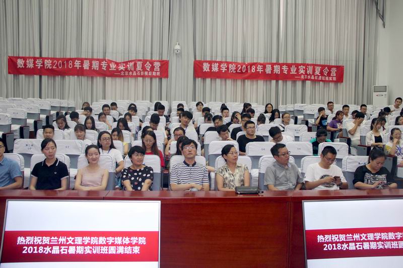 7月27日下午,yl7703永利在我校学术报告厅召开2018年yl7703永利暑期专业实训夏令营——北京水晶石实训成果汇报会,数媒学院院长李恒杰、书记陈小琴副院长邢玉娟、相关专业主任及相关教师、相关班级班主任出席了此次汇报会,企业领导、专家及数媒学院影视后期、虚拟现实两个实训逻辑班的全体学生参加了此次汇报会,会议由北京水晶石部门经理韩晓宇主持。