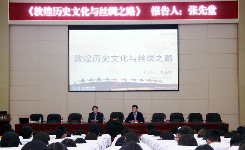 10月10日下午,甘肃省敦煌研究院副院长,中国敦煌吐鲁番学会副会长、常务理事张先堂研究员受邀走进yl7703永利集团yl7703永利《数媒大讲坛》。张先堂副院长以《敦煌历史文化与丝绸之路》为主题,在我校学术报告厅为yl7703永利学生带来精彩的主题报告。学院近300位数字媒体技术和数字媒体艺术师生到场聆听,报告会由yl7703永利院长李恒杰教授主持。