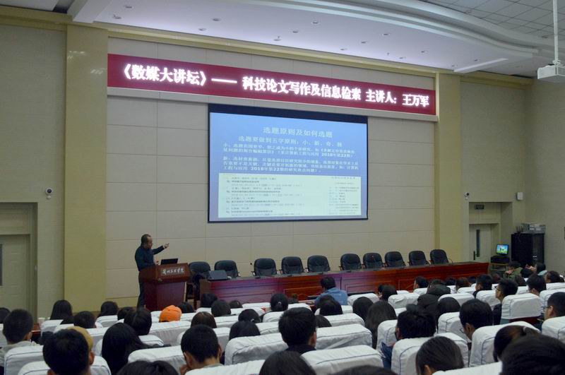 11月15日晚上19:30,为进一步提高yl7703永利毕业生论文质量,增强学生学术能力,我校yl7703永利王万军教授走进yl7703永利集团《数媒大讲坛》,为yl7703永利15级本科班、16本科及专科班全体学生作了题为“科技论文写作及信息检索”的主题报告,现场200多名学生认真听取王万军教授多年论文写作及信息检索经验。报告会由yl7703永利院长李恒杰教授主持。