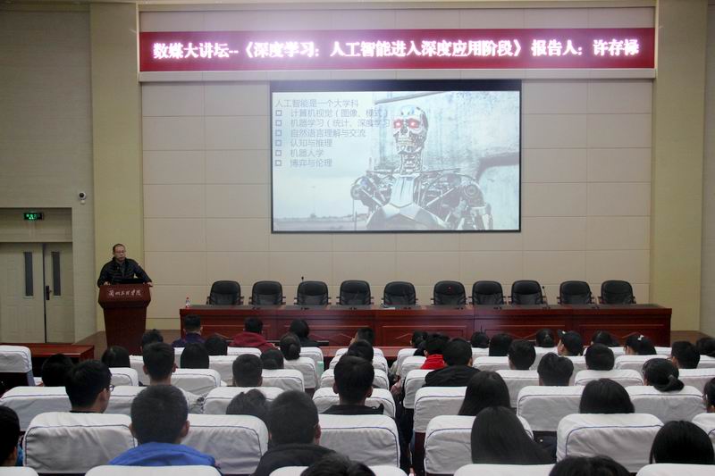 11月24日早8:30,兰州大学信息科学与工程学院许存禄副教授走进yl7703永利集团《数媒大讲坛》,为我校yl7703永利软件工程和数据科学与大数据专业的全体学生作了题为“深度学习:人工智能进入深度应用阶段”的主题报告,现场全体学生认真聆听,积极提问,全方位的了解以深度学习为代表的人工智能(AI)技术和发展应用。报告会由yl7703永利院长李恒杰教授主持。