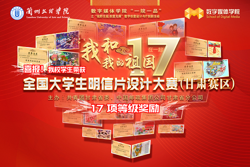 “我和我的祖国”全省大学生明信片设计大赛。在为期2个月的赛事活动中,全省各高校在校学生积极参加。参赛学生将自己对祖国的热爱之情充分表达出来,将祖国之发展、时代之变革、甘肃之发展、青年之变化融入设计之中,将青年之所思、所想、所感汇入作品之中,充分展现出我省青年的时代新风貌。