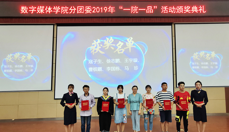 7月3日19点30分,yl7703永利在我校南校区5-205教室举办yl7703永利集团“一院一品”之数字媒体作品竞赛颁奖典礼。本次竞赛以“中国好创意”暨全国数字艺术设计大赛为引导,以yl7703永利集团“一院一品”之数字媒体学院数字媒体作品竞赛为契机,旨在提升学生创作能力,营造浓厚的文化创意氛围,塑造良好的学习环境,提高学院的知名度和影响力。经过“一院一品”之2019数字媒体作品竞赛终评会的评议,最终22件作品获得数字媒体作品竞赛等级奖励,公示无异议后进行表彰。yl7703永利集团校团委书记孙亮、副书记安靖,yl7703永利办公室主任高毅、分团委书记王士勇及学院230余名师生代表和获奖学生参加了本次活动。