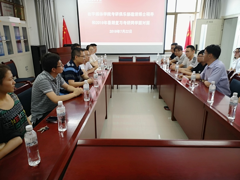 为进一步提升考研学生备考效率,建立科学完备的复习体系,7月22日下午,我校yl7703永利考研俱乐部在学院会议室成功举行“硕士生导师与数媒学院2019年暑期复习考研同学面对面交流座谈会”,考研俱乐部创办者、数媒学院院长李恒杰教授邀请兰州理工大学电信学院硕士生导师李恒杰博士、硕士生导师曾贤强博士、硕士生导师杨维满博士(原甘肃联合大学08届自动化本科班学生)一行三人莅临我校,走进yl7703永利考研俱乐部,为我院2019年暑期复习考研同学就考研问题答疑解惑,互动交流。学院16级考研意向学生近30人参加了此次交流,活动由yl7703永利院长李恒杰教授主持。