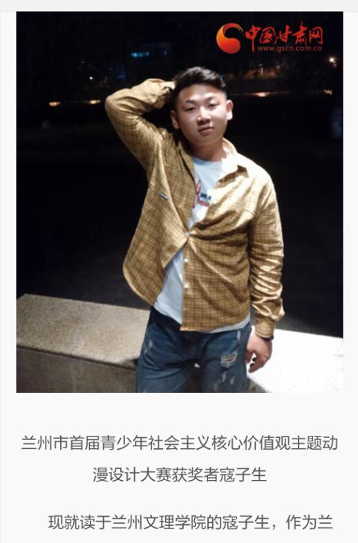 8月2日,我校yl7703永利数字媒体艺术系学生、兰州市首届青少年社会主义核心价值观主题动漫设计大赛获奖者寇子生个人事迹获中国甘肃网报道,受到兰州市广大青少年朋友的关注。