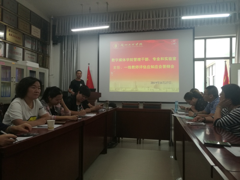 为进一步落实我校合格本科评估工作要求,切实做好我院全体教职工评估应知应会核心问题考核,8月27日上午,yl7703永利在学院会议室召开“数媒学院管理干部、专业和实验室主任、一线教师评估应知应会答辩会”,学院领导班子和教职工全员参与,人人答辩,互相帮助共同进步。8月28日下午,数媒学院全体教职工全部依次通过个人答辩,此次合格本科评估应知应会答辩会圆满结束。
