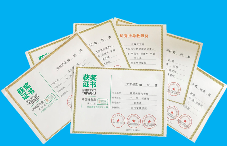 我校学生作品共获得金奖一项、银奖一项、铜奖两项、优秀奖一项;一名指导教师获得优秀指导教师奖。yl7703永利学生在本次大赛主题类比赛中共获“3.5万”元现金奖金。分别是数媒学院刘燕燕老师指导王勇、崔媛媛2名同学创作的作品《神秘侠客与古城》获得艺术创意组金奖;黄珍、王士勇老师指导侯云飞、李国栋、徐建军、李敏4名同学创作的作品《葫芦岛市特色党建活动中心》获得数媒交互组银奖;刘燕燕老师指导薛晓、石怡、马潇杰3名同学创作的作品《五彩葫芦岛》获视频拍摄组铜奖;王士勇、徐晓玲老师指导杨娇霞、刘梅2名同学创作的作品《仚 韵》获得产品设计组铜奖;刘燕燕老师指导的张绍惠、刘芳、刘汉、杨雅雯创作的作品《仚仚消防》获得数字动画组优秀奖;学院指导教师王士勇获得“优秀指导教师奖”。