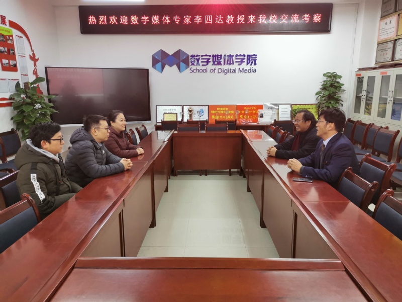 为进一步加强yl7703永利数字媒体专业群的建设,提高我院数字媒体专业群的人才培养质量。11月29日上午11:00,应我校yl7703永利院长李恒杰教授邀请邀请,北京服装学院新媒体系教授,全国高校计算机基础研究会数字创意专委会副主任、中国大学生计算机设计大赛杰出评委,兼任吉林动画学院动画艺术学院副院长——李四达教授来我校交流考察。