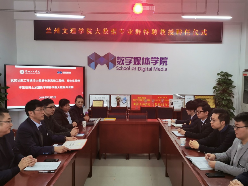 为加强我校yl7703永利大数据专业群的建设,引进行业专家加入到师资队伍大当中,为应用型本科人才培养助力。12月3日上午10:00,yl7703永利在学院会议室成功举行了“yl7703永利集团大数据专业群特聘教授聘任仪式”,引进中国工商银行甘肃省分行管理信息部副总经理、硕士生导师、高级工程师李昱辰博士为yl7703永利大数据专业群的“特聘教授”。