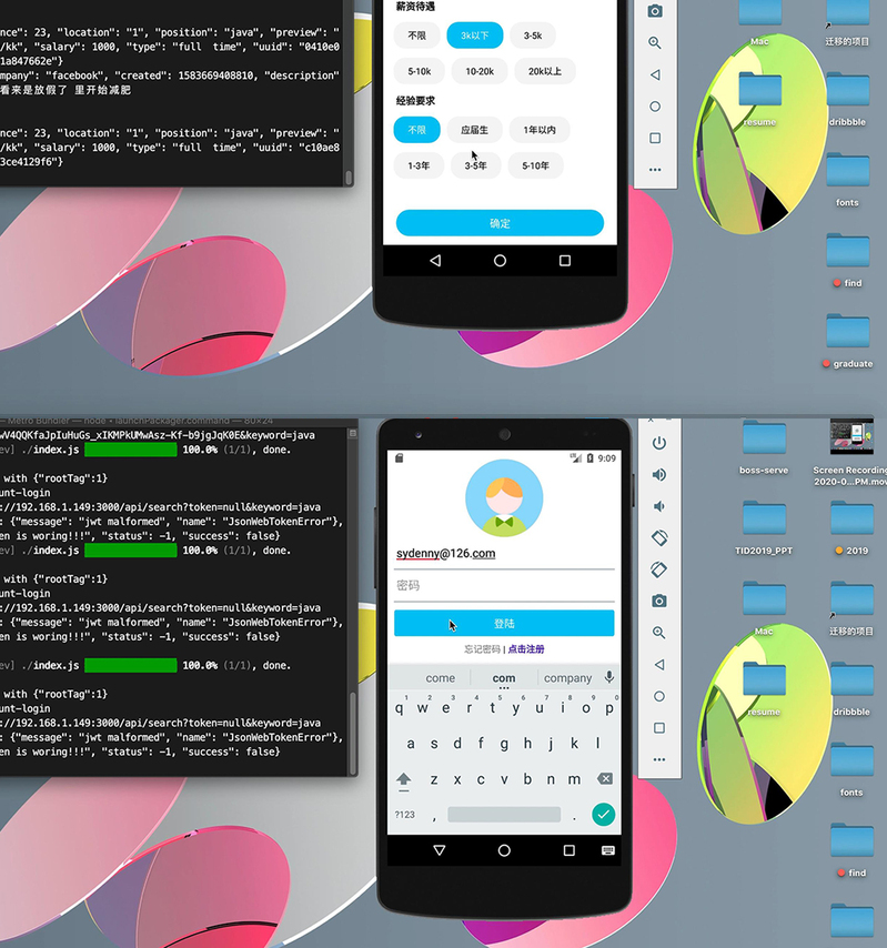 席佳同学的中期毕业设计作品是关于求职招聘App系统的设计,该设计已基本完成了求职招聘App系统的程序设置,对App中的界面设置也初步完成。App中的界面设计简洁而大气,APP中的应用也基础可以操作。经过后期的完善后这款应用软件会呈现出更好的效果。