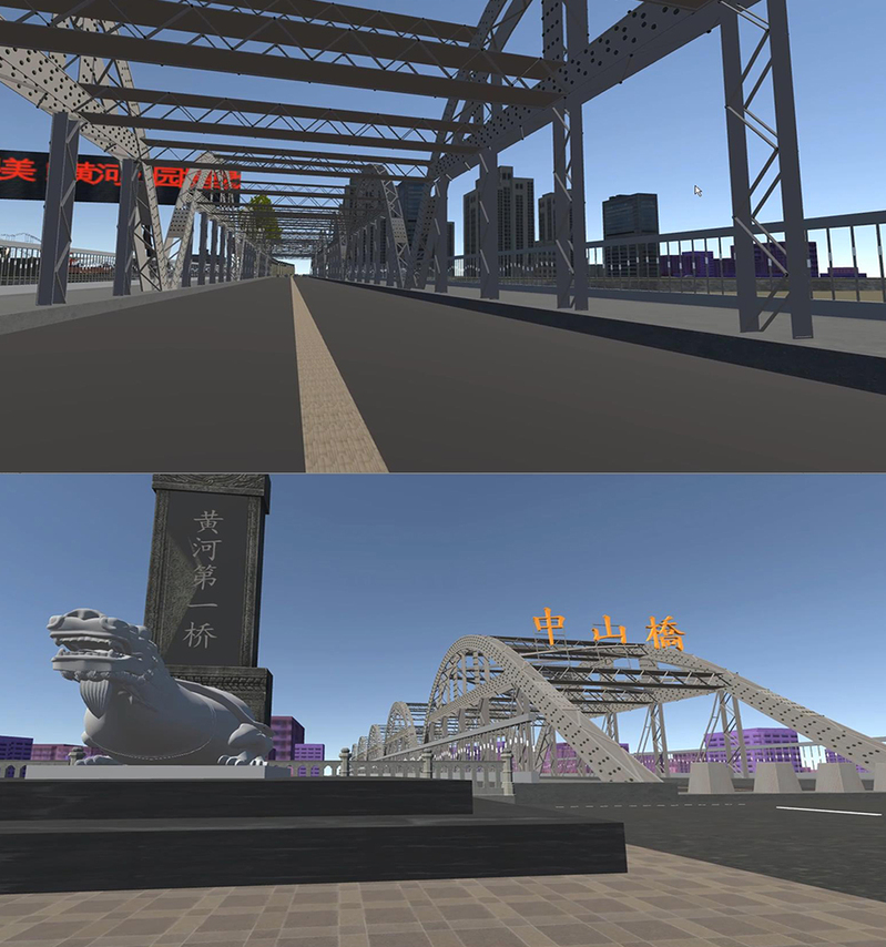 高雷同学的毕业中期展示作品是对中山桥进行了数字三维化还原。作品的主要模型已经完成,并且初步完成了人机交互。体验者可以以第一人称视角去游览场景。虽然还是半成品,但是可以看到高雷同学最终完成毕业作品时的成果。