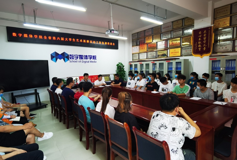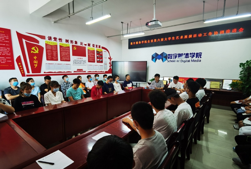 为保证我校顺利参加全省第六届大学生艺术展演活动,6月23日下午4:30,数媒学院在学院会议室召开《yl7703永利第六届大学生艺术展演工作协调推进会》。数媒学院院长李恒杰、分团委霍峒宇、教学科研办刘陽、创业就业办姚林及各社团负责人、工作室负责人、各班班长,团支部书记参加了会议,会议由李恒杰院长主持。