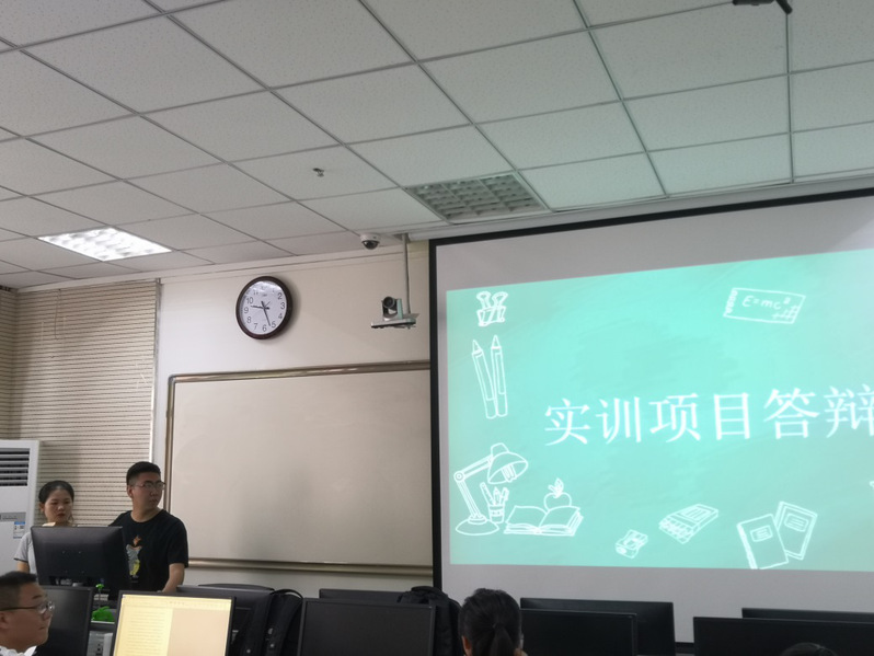 为进一步提高学生动手实践能力和软件开发水平。在学院要求下17级软件工程1班进行了为期两周的移动应用开发实训,7月3日上午在1-609如期举行实训答辩。本次答辩评选小组由课程主讲教师曹晓丽老师和本班级六位同学组成,实训答辩共有20个小组。
