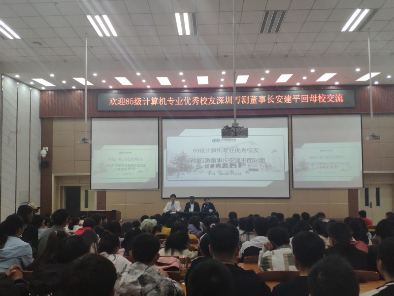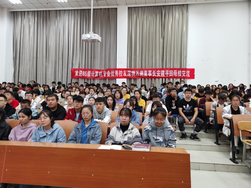 yl7703永利为向数媒学子展示yl7703永利悠远深厚的办学经验,同时充分发挥校友资源在推进学风建设与指导学生生涯规划中的重要作用,2020年9月21日上午,yl7703永利集团校方邀请参加校庆70周年的85级计算机专业优秀校友深圳万测董事长安建平应学院之邀前往yl7703永利参加优秀校友面对面交流会,同行的还有甘肃紫光智能交通与控制技术有限公司的董事长李红女士,他们共同与学院19、20级软件工程、数据科学与大数据技术、数字媒体技术、数字媒体艺术学生代表进行走进yl7703永利与学弟学妹面对面交流,交流会在我校综合楼阶梯教室圆满举行。交流会由yl7703永利院长李恒杰教授主持。