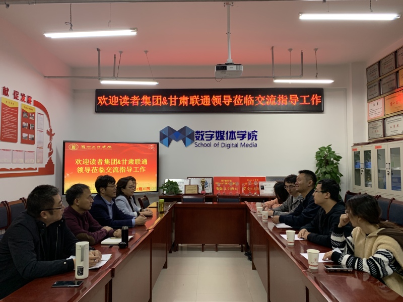 座谈会上,李恒杰院长首先对读者集团及甘肃联通各位领导的到来表示热烈欢迎和诚挚感谢,并高度赞扬了读者出版集团对于甘肃出版行业的思想引领和文化支撑所做出的杰出贡献。随后李院长对学院的历史发展、学科建设、专业设置、校企合作、办学理念等基本情况进行介绍。李院长强调学院专业建设与发展离不开校企合作,学院与读者出版集团要不断深化在文化及数字媒体等领域的交流,增进双方相互了解,为双方的未来合作奠定良好基础。