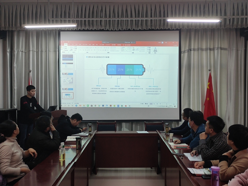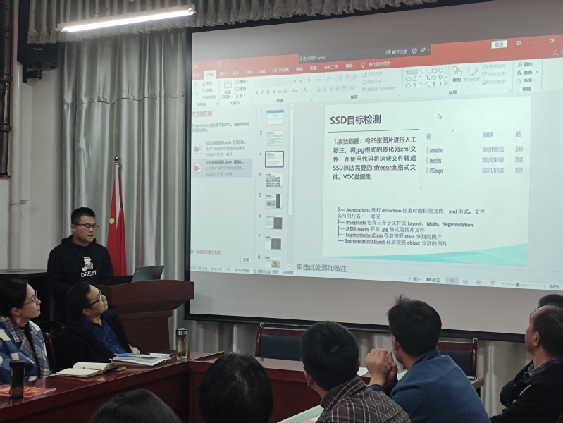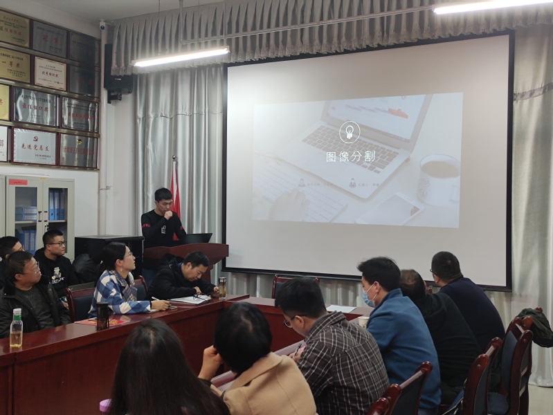 展示会上,18大数据班的学生代表依次展示了自己的实训成果,两位同学依次从分割网络(U-NET)、图形分割算法、SSD算法分析与SSD目标检测几个方面简单展示了这三周实训的成果。最后由实训教师刘昌荣对这次实训的成果展示做了点评与总结。