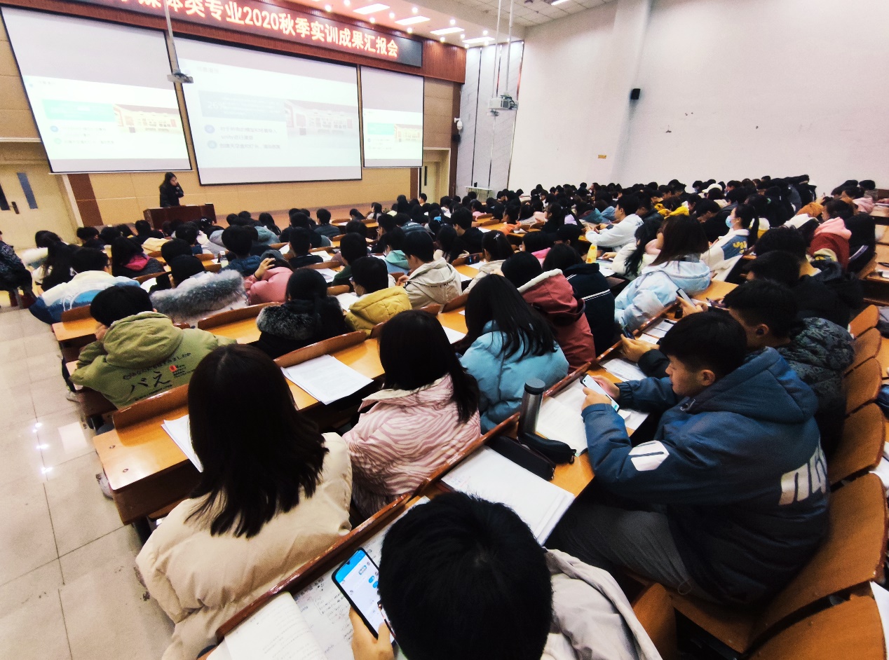 在随后的汇报过程中,各班共十余个汇报小组依次进行了实训汇报展示,对他们完成的不同项目做了详细讲解和展示,并分享了实训过程中的心得体会。本次汇报会展示的实训作品质量高,展示效果好,各位汇报同学的讲解细致专业而不失幽默,赢得了同学们热烈的掌声。