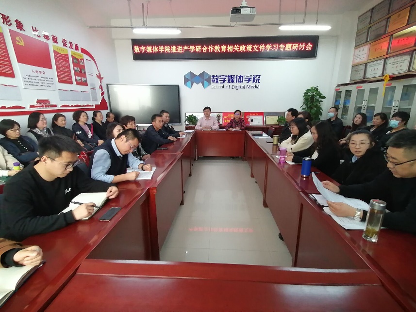 3月18日下午,数字媒体学院在学院会议室召开推进产学研合作教育相关政策文件学习专题研讨会。院长李恒杰、书记陈小琴出席并主持会议,学院全体教职工参加会议。