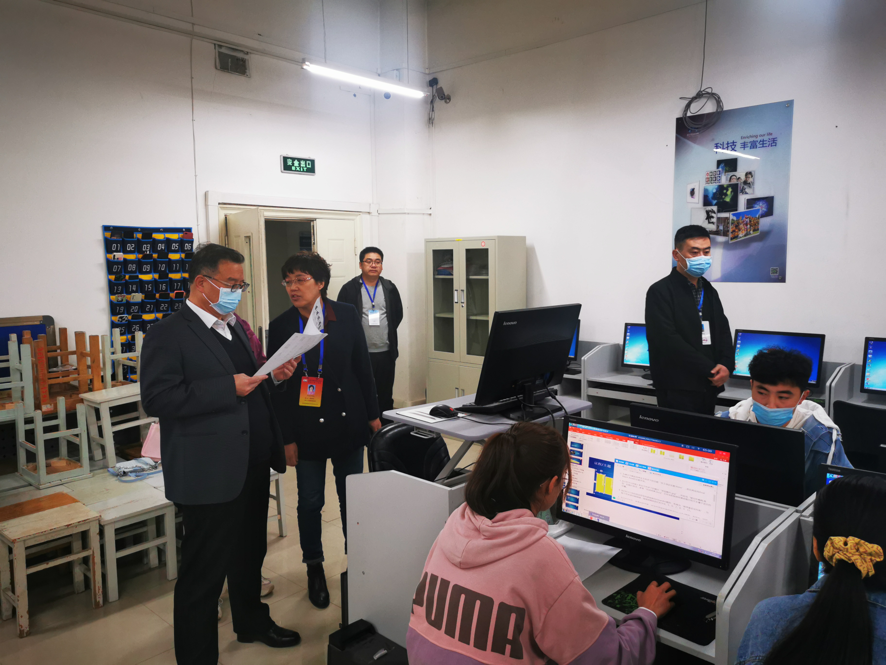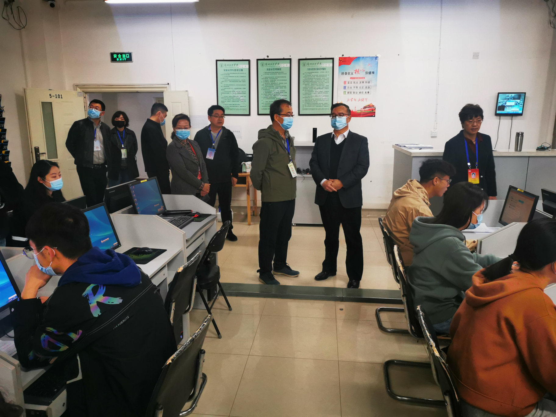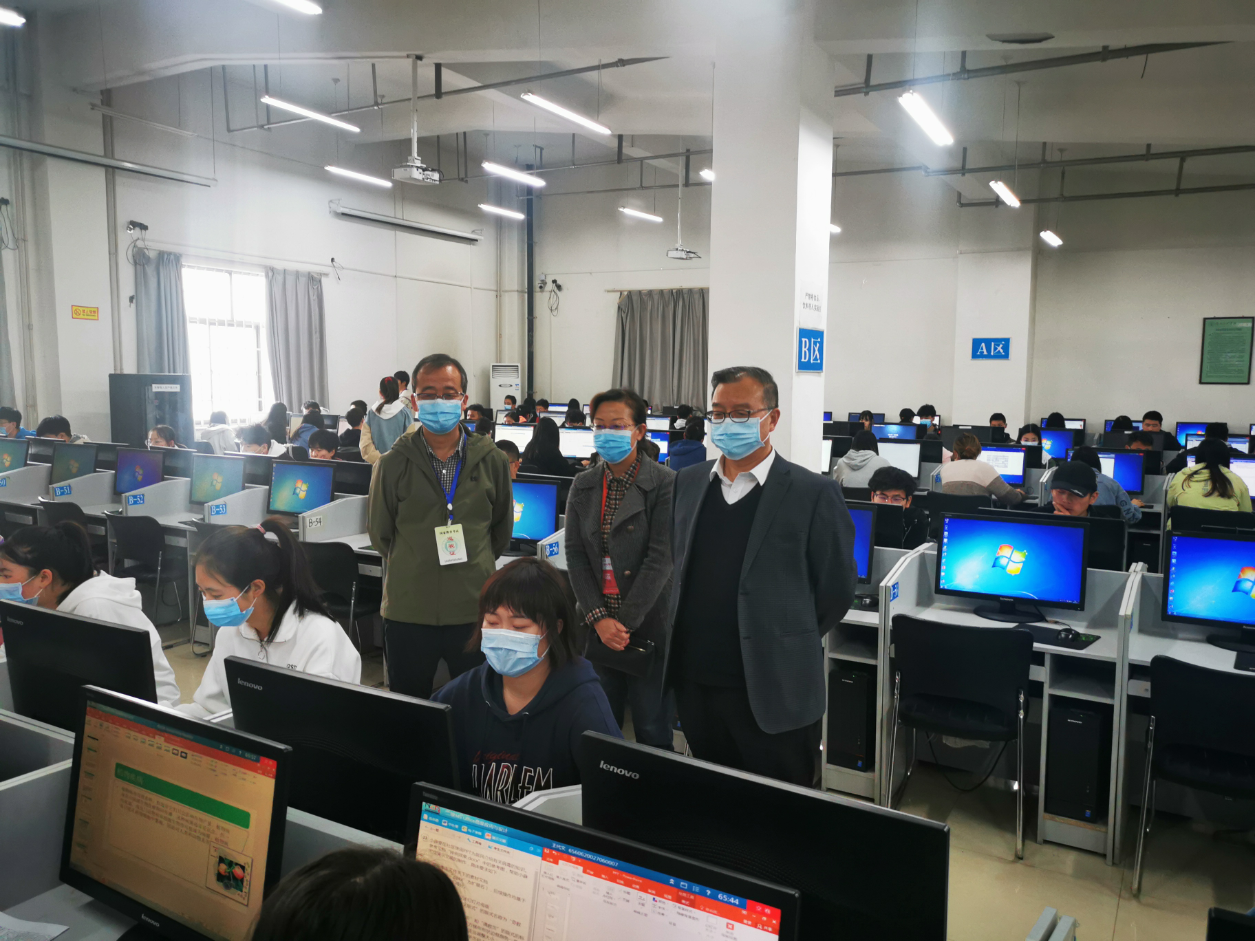 我校校长郑伟强、同省考试院巡视组赵俊一行四人、省派巡视员王雅文在yl7703永利书记陈小琴、副院长黄珍的陪同下巡视了所有考场,并听取了考场设置、管理、疫情防控等情况汇报,对此次考试各项工作和考场纪律给予高度肯定。