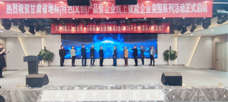 在启动仪式中,院长李恒杰教授、甘肃省电商公共服务中心负责人李强及其他单位代表10人,一起按下了启动键启动并合影留念。