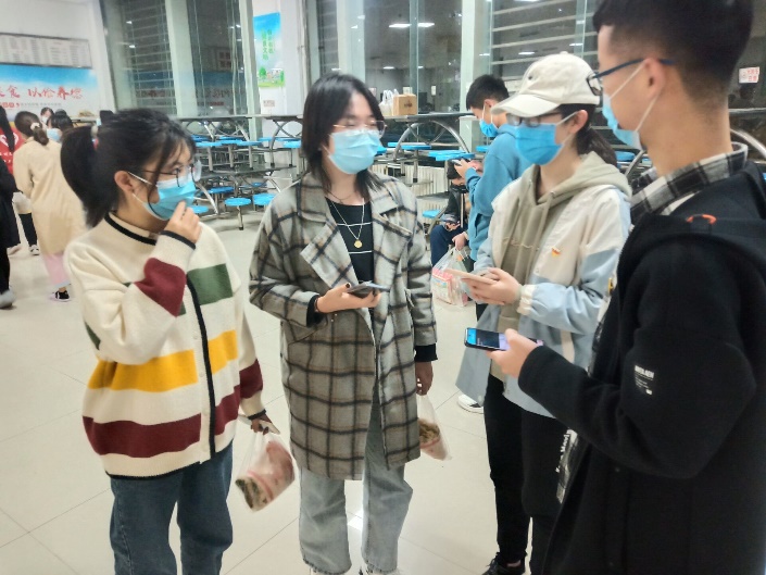 党员志愿者们在思源楼学生第二食堂一楼,面向全校同学开展疫情防控知识宣传,提醒大家文明用餐,注意就餐卫生:做好个人防护,排队购餐时遵守前后左右间隔1米的防控要求;做到不在食堂用餐,购餐后不逗留。