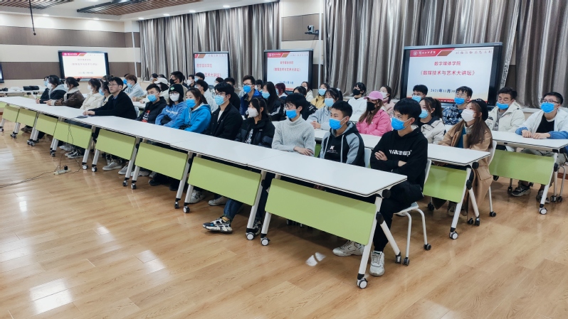 讲座伊始,罗超首先为大家分析了数字媒体产业所涉及的各个领域,并且就多种行业内核进行了详细分析和项目展示。随后,他整理出了数媒方向就业前景较好的行业,并且向同学们提出他个人的相关建议和适于未来工作的想法,让同学们拍照记录作为参照。紧接着,我院学生积极提问发言,罗超耐心且详细地为同学们一一做了解答。