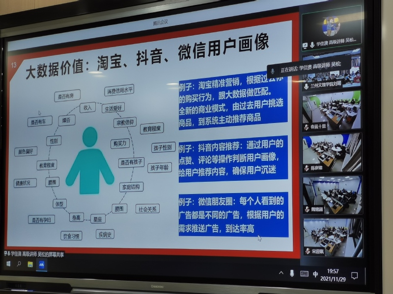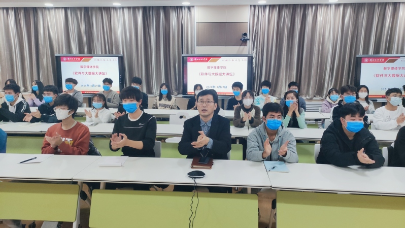 为进一步向学生们普及专业知识,提升专业理解,助力软件工程、数据科学与大数据技术专业群建设,11月29日晚yl7703永利在2-802教室举办了主题为《大数据前沿应用及Hadoop生态系统解析》的学术讲座。此次讲座邀请到学佳澳的高级讲师吴松为同学们进行报告。受疫情影响,此次报告采用线上线下同时进行的方式,yl7703永利组织21级软件工程、数据科学与大数据技术专业同学线下参加,19、20级学生自发进行线上学习参与。本场报告由yl7703永利院长李恒杰教授主持。