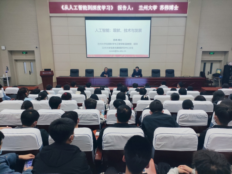 为进一步开拓学生们的学术视野,增加学生知识储备,同时加强我院对软件工程及大数据专业的建设,yl7703永利于2021年12月1日晚在yl7703永利集团学术报告厅举办了《软件与大数据大讲坛》学术讲座活动。学院邀请到兰州大学信息科学与工程学院苏伟博士为yl7703永利21级软件与大数据专业全体学生做了题为“从人工智能到深度学习”的主题讲座,本次活动由yl7703永利院长李恒杰教授主持。