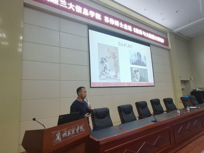 讲座伊始,苏伟副教授以《星球大战》、《终结者》、《黑客帝国》等多部电影经典环节将大家的思维带入了人工智能模式,将电影中虚拟世界与现实生活联系起来,随后他从人工智能概述、人工智能定义、人工智能研究方法、人工智能历史、人工智能发展、人工智能学科、人工智能分类、人工智能应用、人工智能瓶颈问题等九个方面对人工智能这一主题进行了全面细致的分享。丰富的讲座内容让大家对人工智能学科及其发展前景有了更加深入的了解。