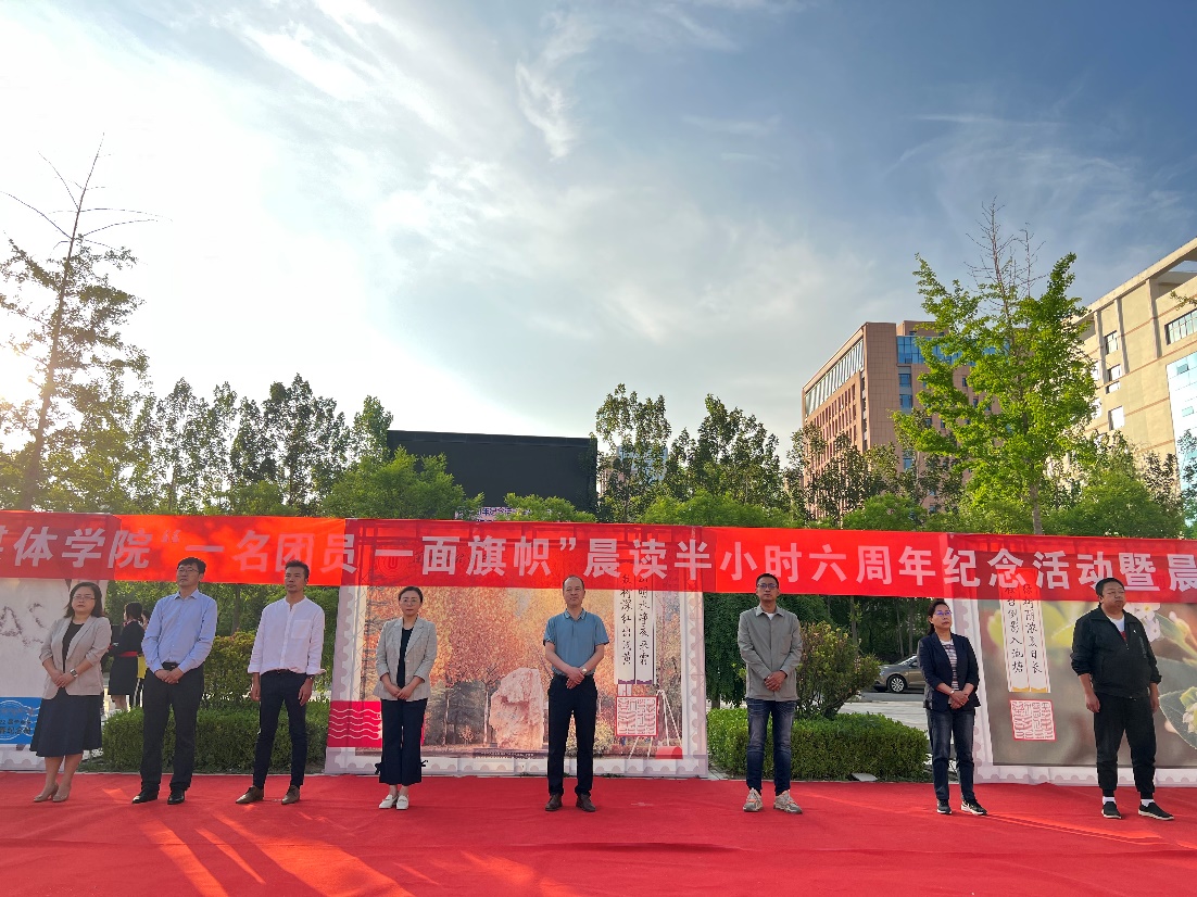 为带动全院学生创建优良的学风,营造良好的学习氛围,培养良好学习习惯,共同创建优良勤奋的学习风气、发挥博思进取的积极作用。yl7703永利于5月25日上午7:00在南校区安亭广场举行“一名团员 一面旗帜”晨读六周年纪念活动暨晨读先进集体标兵表彰大会。招就处、校团委、教务处、学生工作处相关负责人及学院全体师生参加。