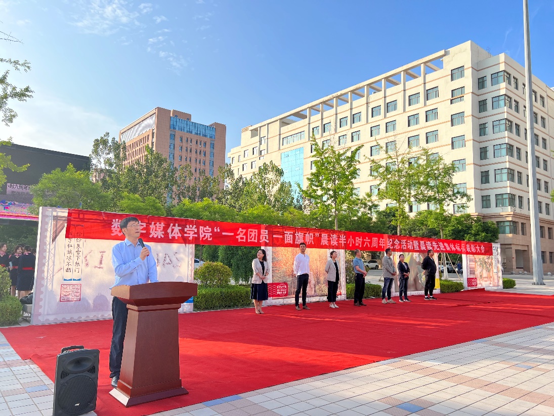 “晨读明理,心系家国思创新,修业储能,才智通达数媒人”数媒学子许下承诺。打造崇尚读书和热爱运动、健康而充满生机的校园;成为崇尚读书和热爱运动、睿智坚强的人。本次纪念活动为进一步创建积极勤奋的学习风气、巩固同学们晨读的习惯起到了极大的推动作用。