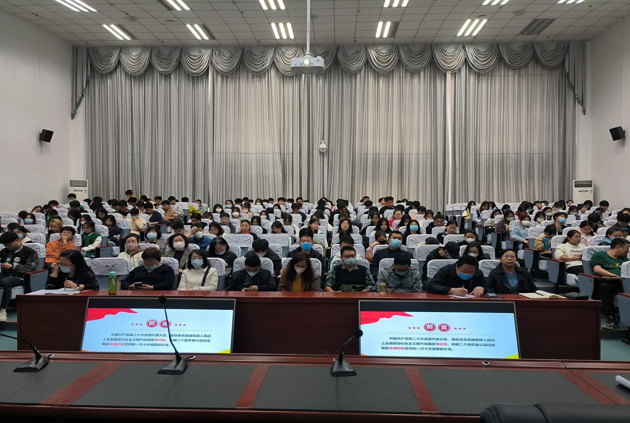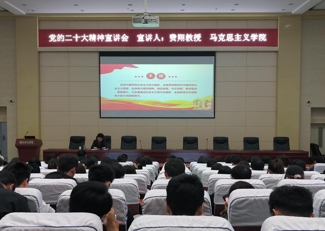 3月23日下午,yl7703永利党总支邀请马克思主义学院费翔教授在综合楼二楼学术报告厅为学院师生宣讲党的二十大精神,报告会由学院党总支书记陈小琴主持,学院200余名师生与会。