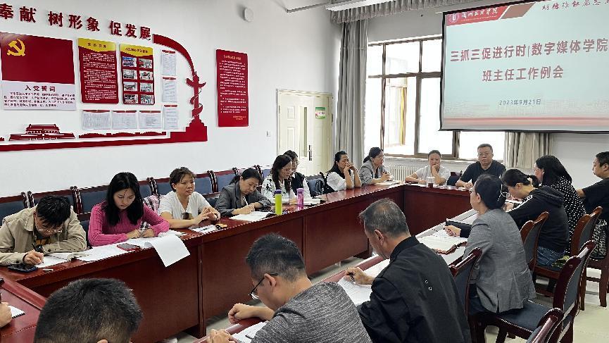 会议传达了学工委关于2023年综合测评、评优选先等工作要求,解读了学校相关文件,部署了近期工作,提出了工作要求;优秀班主任代表李岚、潘颖、周琦分享了带班经验;张毅、任敏兄就管理班级中学生的思想状况、存在问题、应对措施进行了剖析。会议强调,各班主任要严格按照学校文件和学院要求抓好工作落实;学习借鉴好的带班经验和做法,补短板强弱项,将立德树人根本任务落实到学生教育管理中,为培养高素质应用型人才做出应有的贡献。