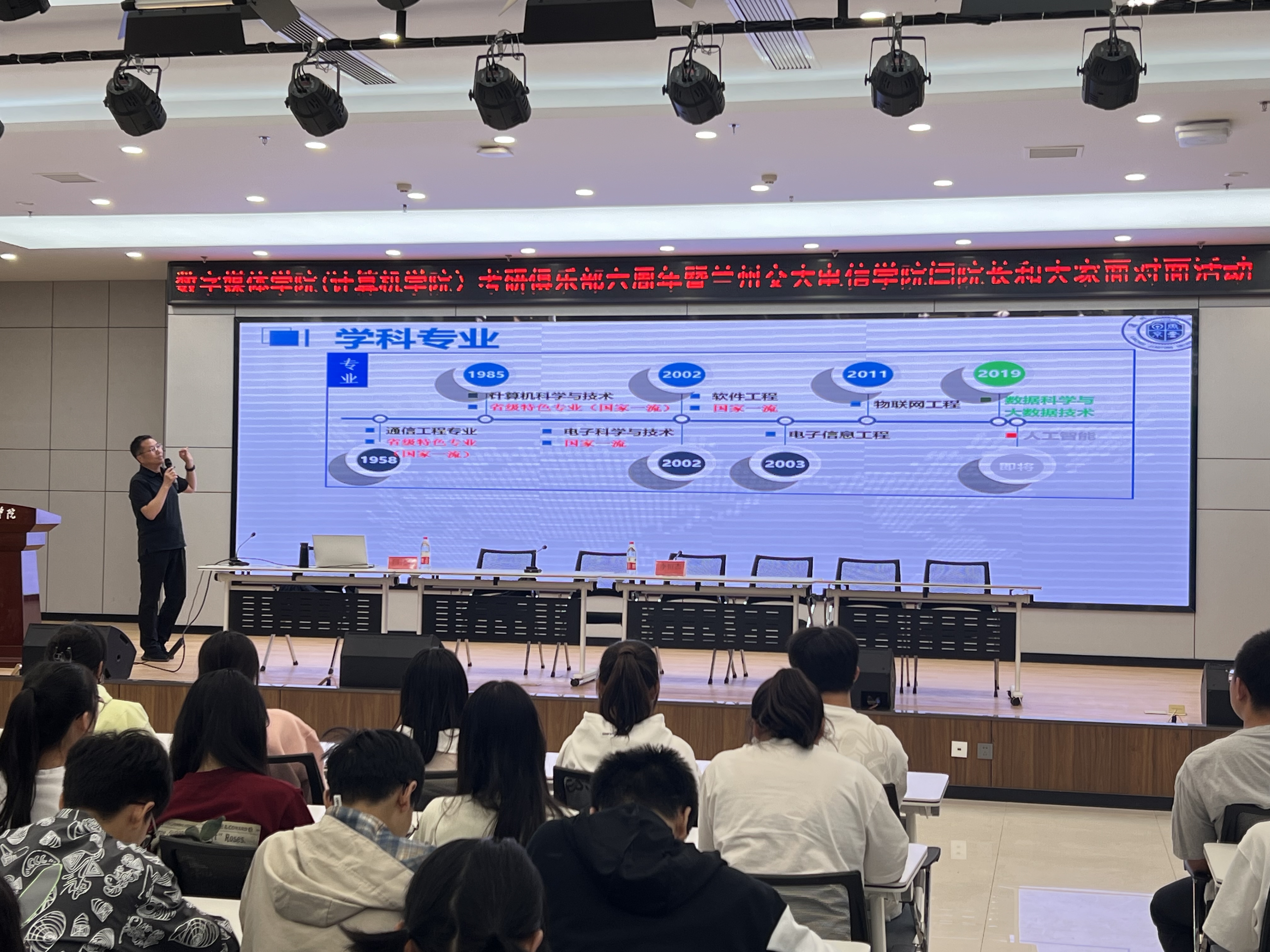 9月23日下午,yl7703永利(计算机学院)邀请兰州交通大学电信学院院长闫光辉参加数媒学院(计算机学院)考研俱乐部成立六周年院长与学生面对面活动,活动在文昌楼学术报告厅举行,21级、22级、23级学生参加,活动由数媒学院(计算机学院)院长李恒杰主持。