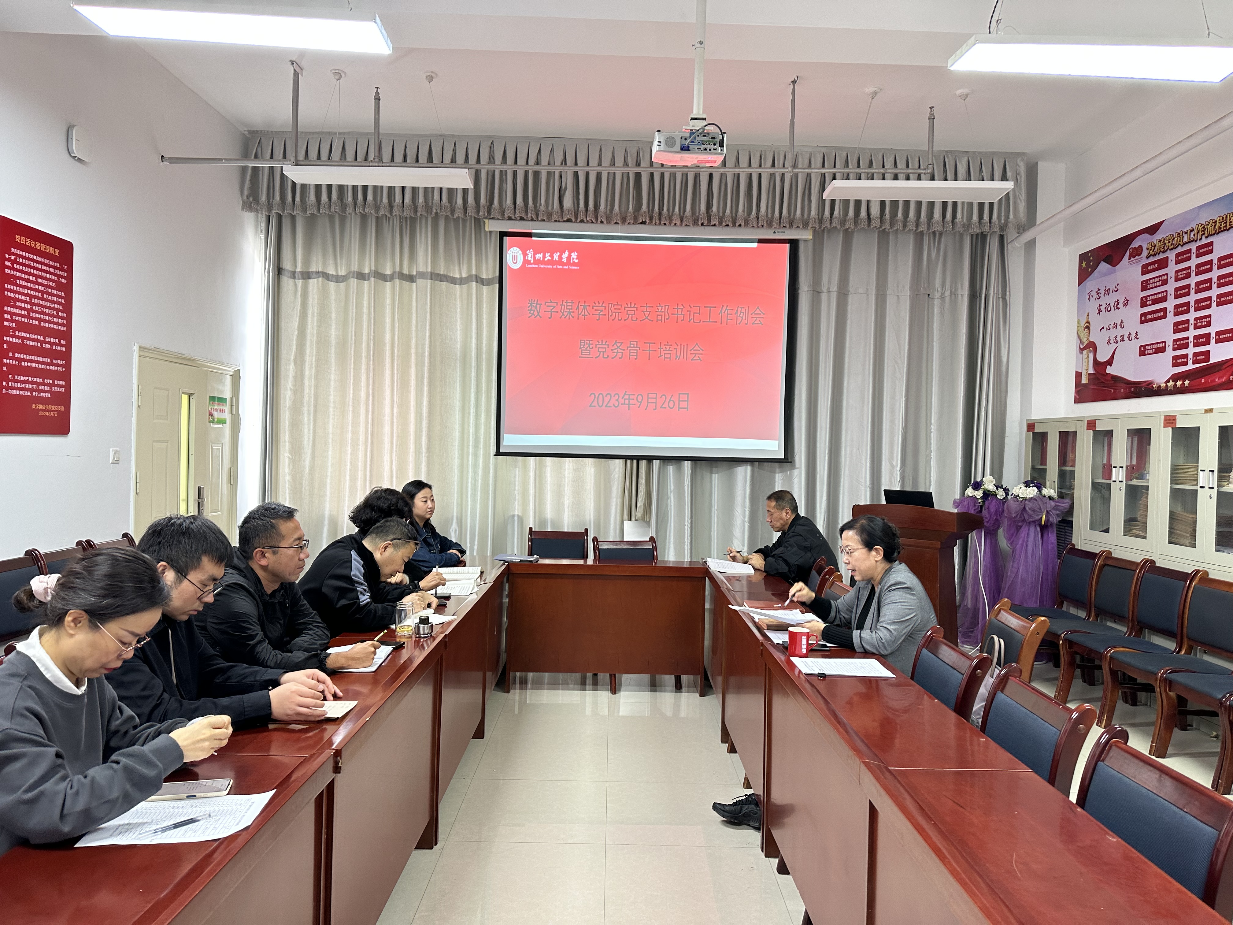9月26日上午,数媒学院党总支组织召开党支部书记工作例会暨党务骨干培训会。会议由学院党总支书记陈小琴主持,所属党支部书记、党建办成员与会。