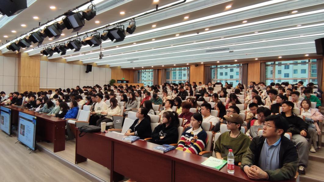 刘渊首先从科学发展、技术创新、艺术变革三个维度,介绍三者如何应用在数字媒体专业领域;接着他展示了数据可视化的应用成果,虚拟现实技术在医疗建设中体现出的价值,并与学生们畅谈数字媒体在现实生活中的各种应用;最后,根据参会学生不同的年级和专业,刘渊给予了宝贵的学习建议,并对学生们今后的发展提出希冀。